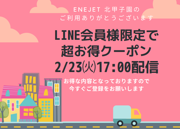 2月23日(火)にもお得な燃料割引クーポンの配信を予定しておりますので、2月23日(火)までにお友達登録をお願い致します。